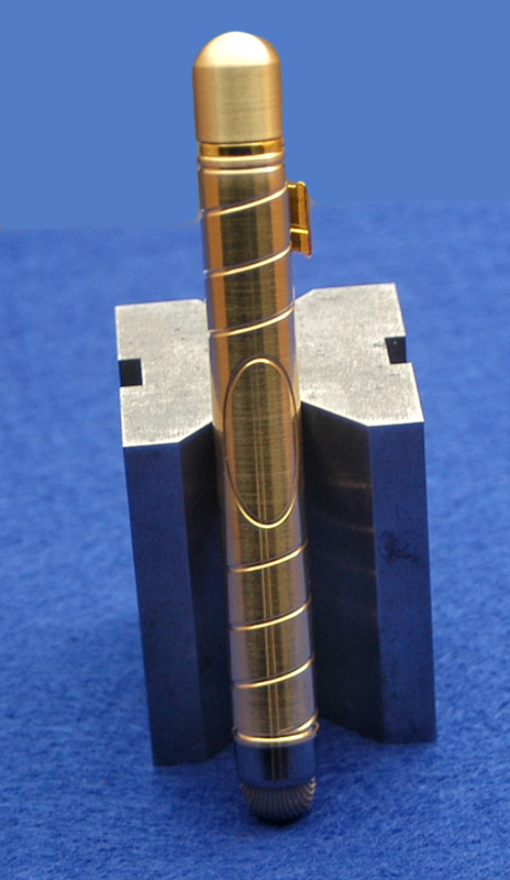 Fully fabricated from solid Brass, the Stylus Pen comes with a soft cloth covered rubberized end.